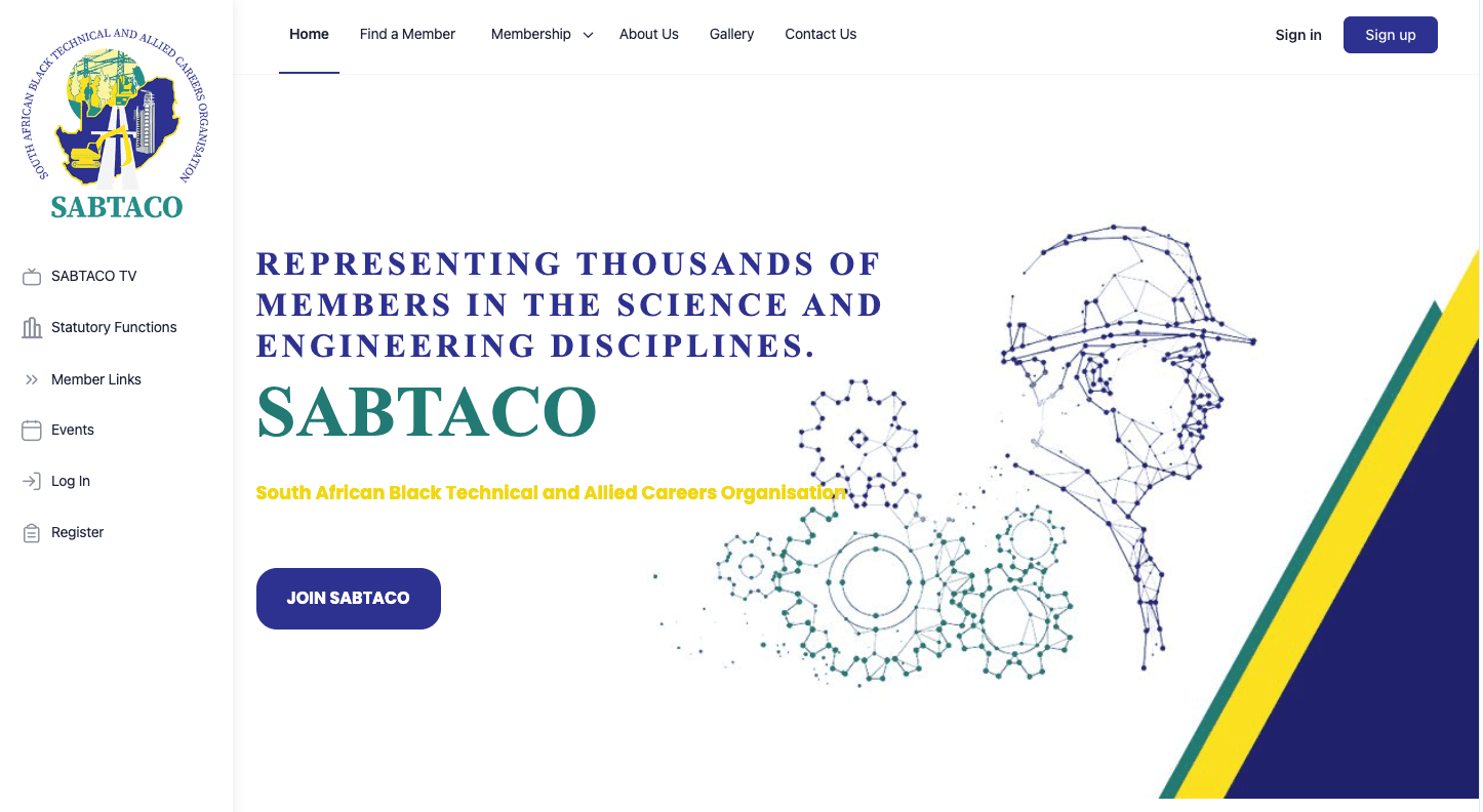 The South African Black Technical and Allied Careers Organisation (SABTACO) is a crucial organization supporting black professionals in science, engineering, and technology. Their legacy membership management system hindered growth and lacked features for a thriving online community. SABTACO partnered with Dinnative to develop a secure and feature-rich membership portal, along with ongoing maintenance and support.